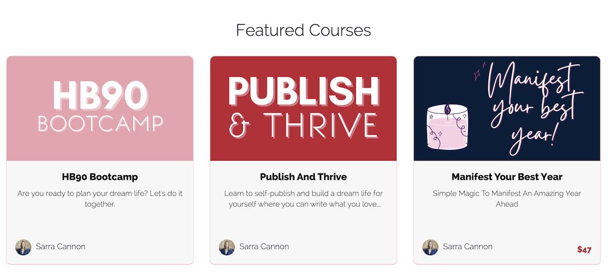 Sarra Cannon is an indie author and has a YouTube channel with around 10,000 subscribers. Alongside her book sales, she also offers writing and publishing courses through Teachable: