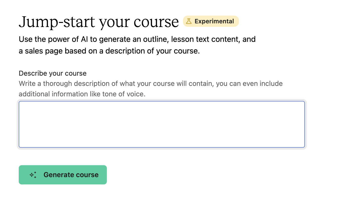 Remember, today is all about laying the groundwork. Don't get caught up in perfecting every detail or creating all your content just yet. Trust the process and let our AI tools guide you in creating a solid structure for your course.