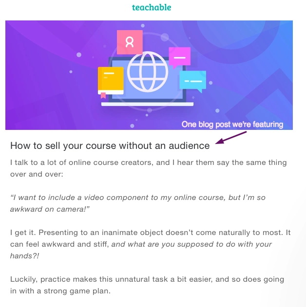 Here at Teachable, this is our usual strategy. We send out newsletters twice a week, and more often than not we’re sharing just our latest blog post.