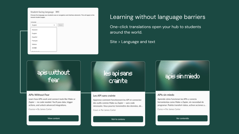 Catch the replay of our recent webinar to see how Teachable's student home can guide students, drive repeat sales, and connect your community, all in one place.