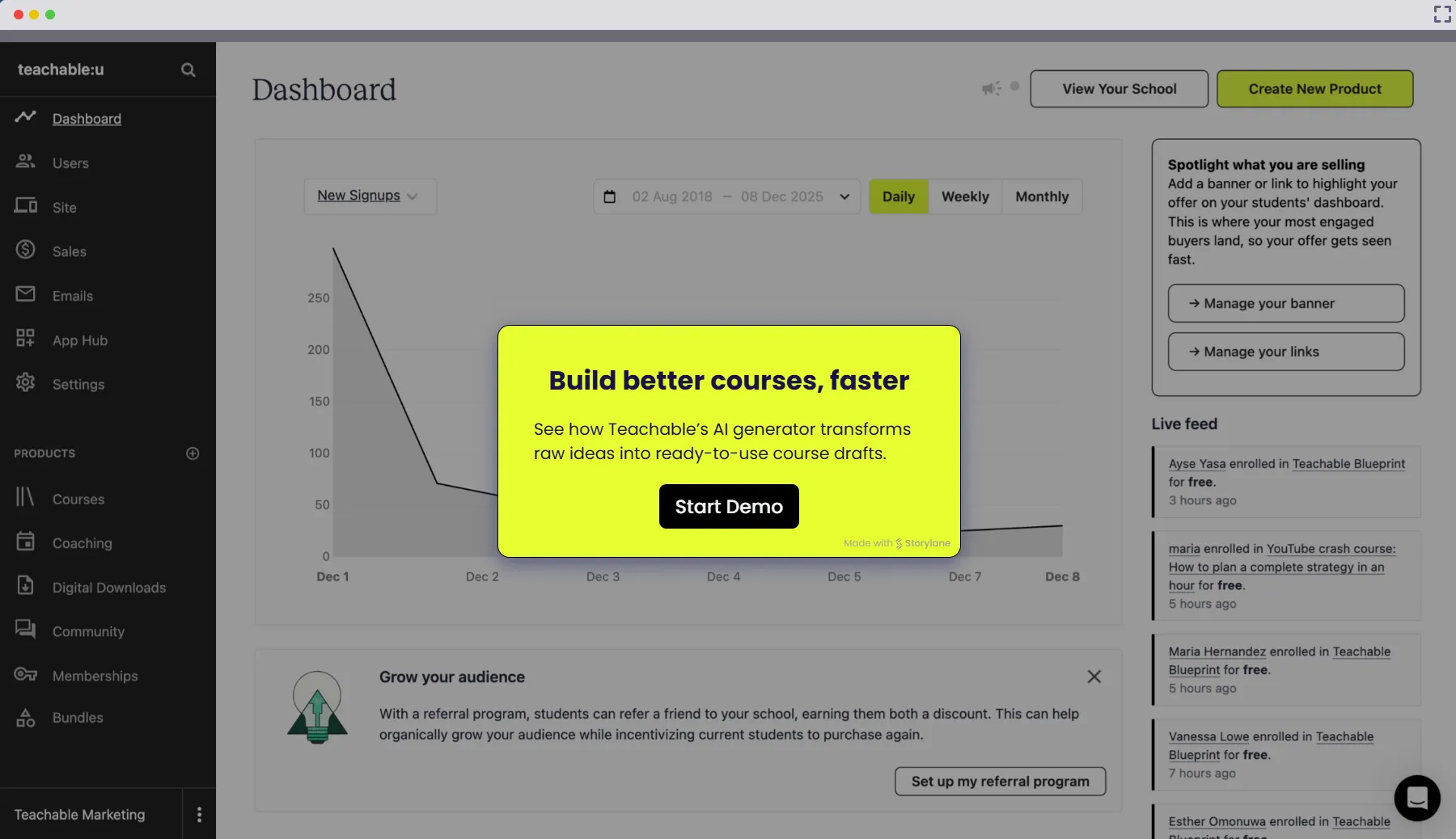 Teachable’s AI tools make course creation and engagement effortless.