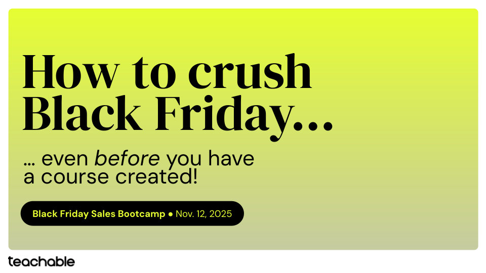 Monique Lu, Creator Programs Specialist at Teachable and Jordan Hoopingarner, Customer Success Manager at Teachable hosted a Black Friday webinar mapping out precisely how you can sell more this Black Friday, even if you haven’t built your product yet.