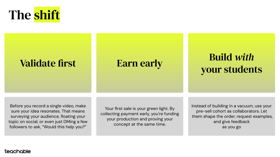 Pre-selling removes the pressure that comes from creating in isolation. You stop guessing. You stop grinding alone. You create with your audience instead of creating for them. That shift reshapes the entire process.