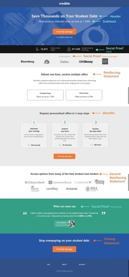 This is your last chance to reinforce your unique selling proposition. It’s usually found at the end of a longer landing page and reflects a similar message to your headline. Once again, this should look like the other headlines on your page. Couple this statement with another CTA button to increase conversion opportunities. If your landing page has all of the information above the fold, this statement isn’t needed because your headline is still visible.