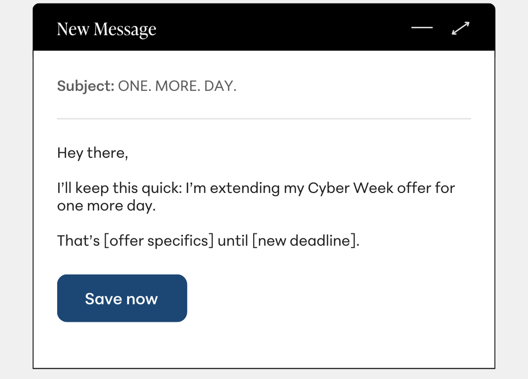 So I’m extending the Cyber Week offer for 24 more hours. [Add offer specifics here.]