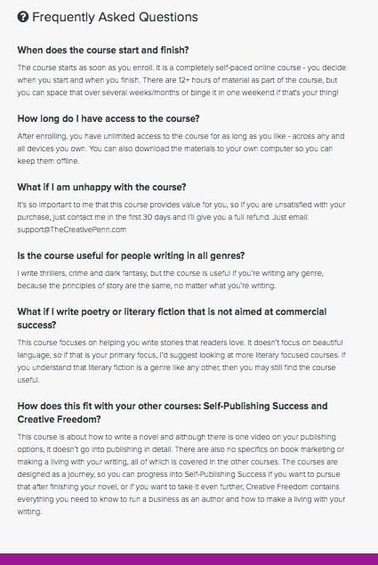 These instructors do a great job vividly describing what they’re offering their students and what customers will walk away with after purchasing the online course.