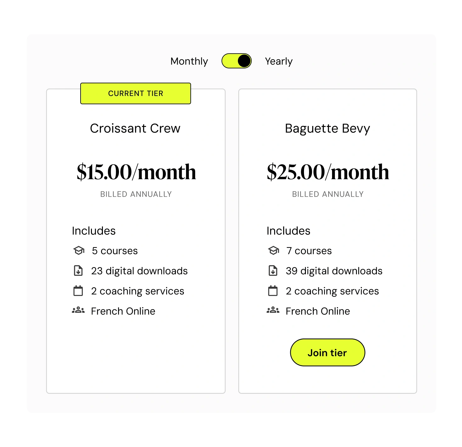 Memberships are a proven way to earn more—often with the products you already have. Students on memberships have a 43% higher lifetime value than one-time students. That’s because memberships let you deliver consistent content and foster connections, making your students more engaged and your brand stronger than ever.
