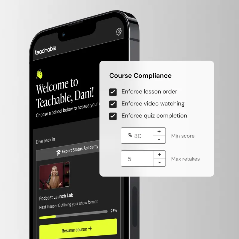 It’s natural for students to want to skip ahead, but we help you ensure that they are consuming lessons in the correct order and watching at least 90% of each video.